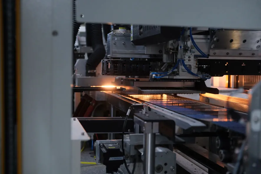 Yapay zekâ ile desteklenen üretim süreçleri, hem verimliliği hem de kalite kontrol seviyesini önemli ölçüde artırır. AI tabanlı denetim sayesinde EL (elektrolüminesans) hataları otomatik olarak tespit edilerek hata oranları minimuma indirilir. Üretim hattının tamamı sürekli izlenir ve insansız araçlarla otomatik yığınlama işlemleri gerçekleştirilir. Bu entegre otomasyon sayesinde süreç tutarlılığı yükselir, ürün kalitesi standartlaştırılır ve yüksek verimlilik seviyelerine ulaşılır.